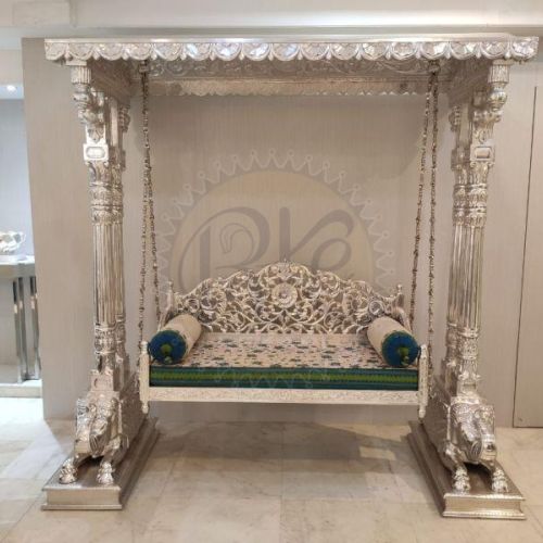 Lion Pillar Antique Metal Jhoola with Cushioned Seat